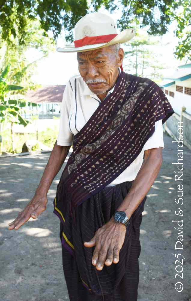The final (so far) version came in 2019 from the kepala desa of Lamagute, Anwar Koli Witak from suku Witak, who said that such sarongs were only made by women belonging to the clan suku Making. He claimed that the design was created by his grandmother, Deram Bisa Making, who died in 2016 aged 80-90. Then other people from suku Making copied the design. This design is only woven in Lamagute. The kepala desa has two of these made by Mama Deram. Deram’s daughter, Jari Laba from suku Making, was still alive aged 102.