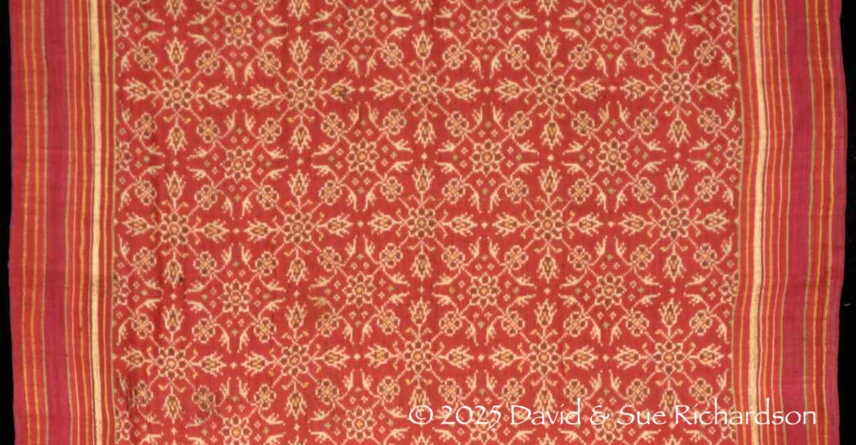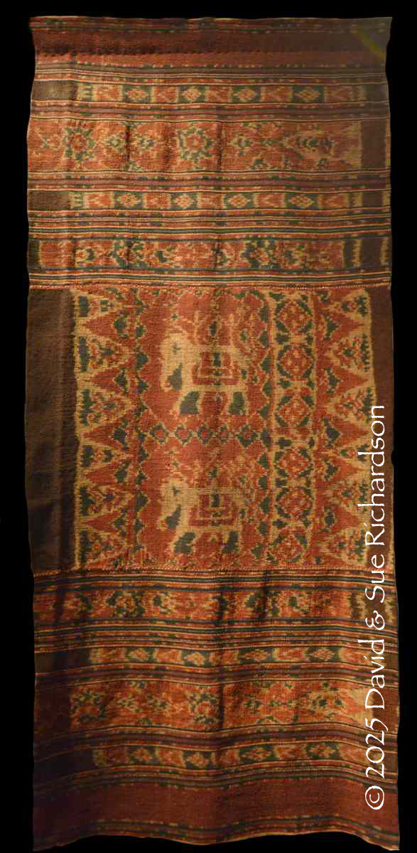 The influence of patola motifs on local Lembata textile design is undeniable, as evidenced by this kewatek nai telo from Lamalera in the collection of the Museum der Kulturen, Basel, acquired at some time prior to 1950. The elephant motifs are remarkably similar to those found on the most prestigious types of silk Gujarati patola.