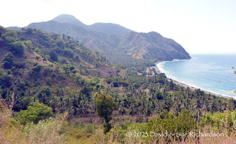 Nggela is located on a small plateau situated some 180m above sea level, and about 1km inland from the coast. The land to its north rises steadily up to the foothills of the dormant volcano Kéli Bara (1731m).