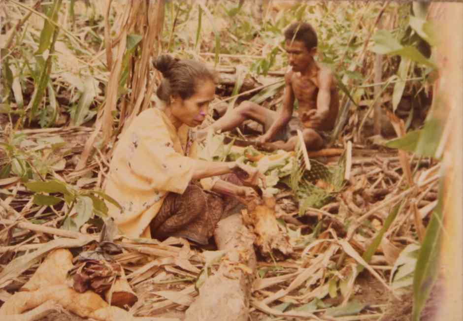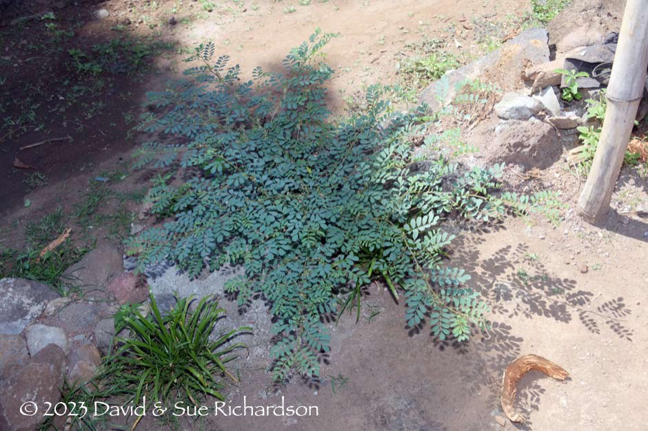 Weed-like indigo also thrives in this environment in open areas and on the margins of woodland. Even within kampong Nggela, indigo grows wild around the houses and graves and in crevices along the walls.