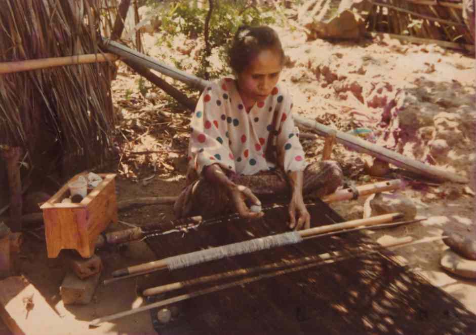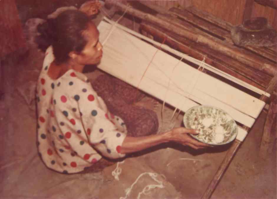 The availability of wild cotton (kapas) was always insufficient for the village’s weaving needs, so in the past cottonseed was recovered from the raw cotton and planted in local gardens during the rainy season between December and February, and harvested in the dry months of August and September. However during the 1930s, the increasing availability of commercial machine-spun cotton meant that many women no longer needed to plant cotton. This soon changed after the onset of war when imported commercial cotton became scarce. After the Japanese invaded in 1942, the occupiers made the cultivation of cotton compulsory. Cotton cultivation and hand-spinning continued across Flores into the 1960s due to the economic uncertainties of the Sukarno era. Under Suharto’s New Order regime, yarn imports finally revived, leading to the erosion of cotton-growing and hand-spinning (Hamilton 1994, 54). By 1979 the transition to commercial yarn in the Ende and Lio weaving districts was almost complete (Maxwell 1980, 143).