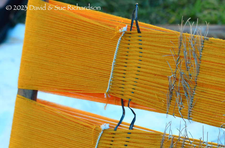 A pair of coloured cords are laced around the individual yarn bundles so they can be easily separated for binding.