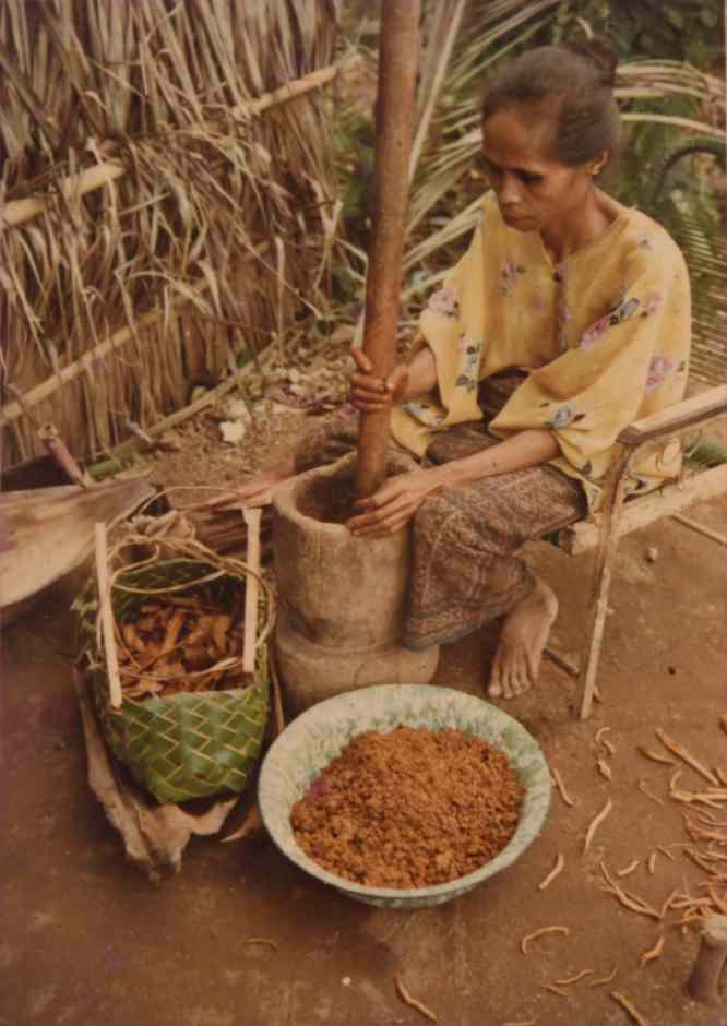 The Lio of Ende Regency refer to morinda as kembo. In the past it was used extensively, but now only a limited number of women can process it and dye with it.