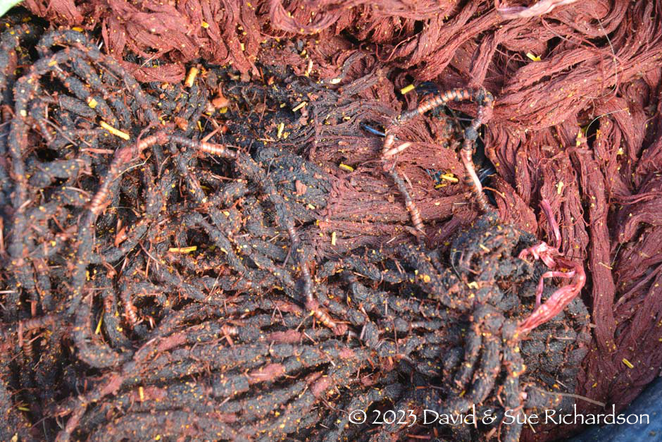 In the past some dyers have used a hot solution of sappan wood to overdye their morinda to deepen the red into a distinctive earthy brown.