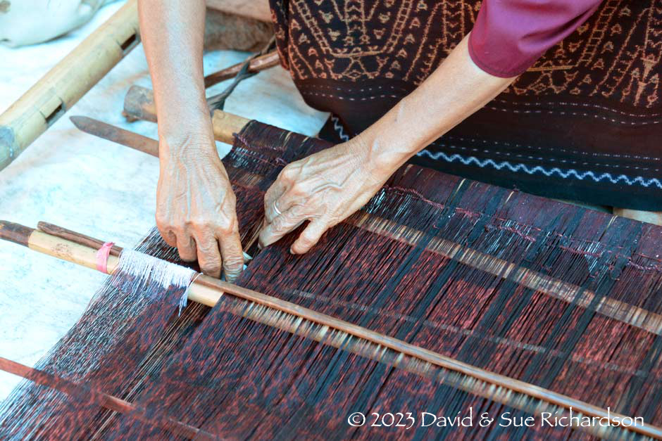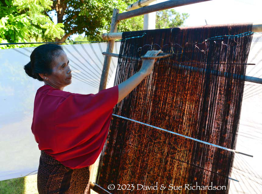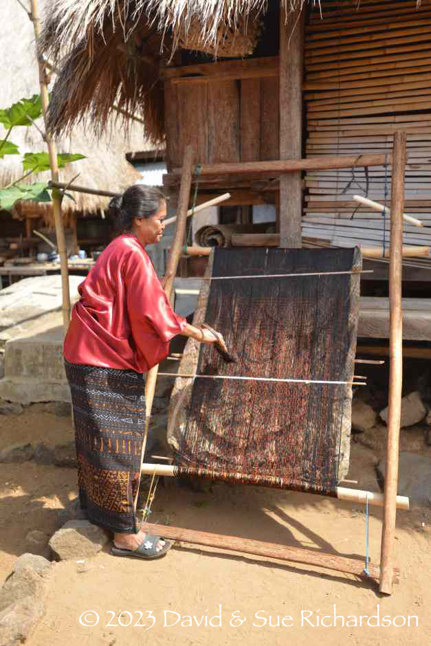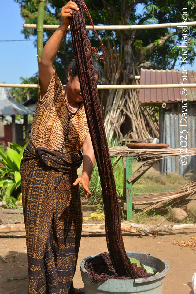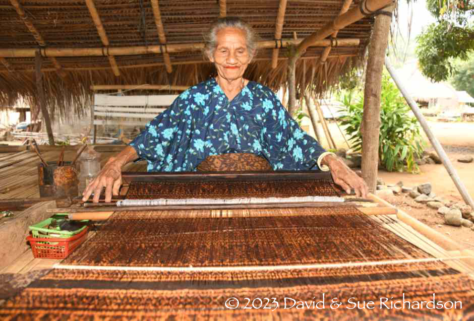 Another very active group was Kelompok Kema Sama in dusun Wawo Lambo. However by 2023 this had shrunk to just two members, one of whom is the master dyer and binder Mama Fransiska Yasinta Mbaru.
