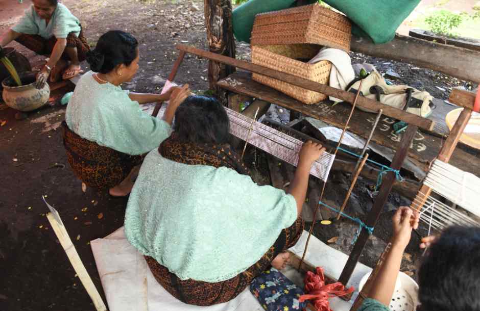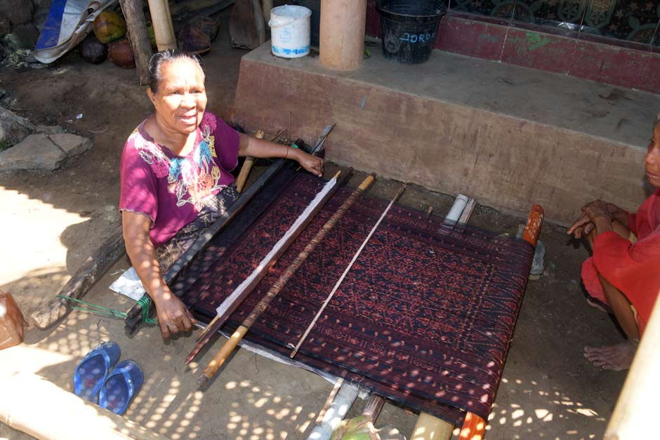 Some years ago, in a move to support the important weaving centre of Nggela, the local government established a cooperative for the whole village called Kelompok Mamo Nggela, mamo referring to the grandmothers and ancestors. Over time this has fragmented into around 23 to 25 smaller kelompok (groups), the majority of which are about the same size. Some are more active than others.
